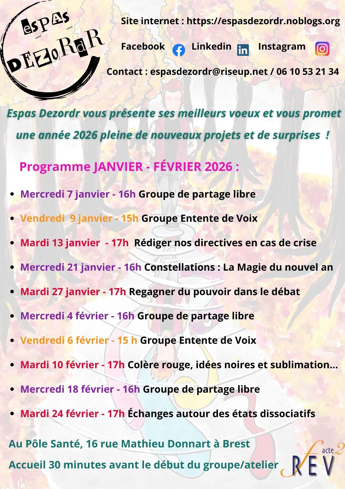 Vous retrouverez ici les programmes détaillés de nos rencontre (groupes libres, ateliers et groupes sur l’entente de voix).
